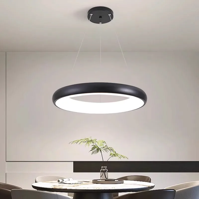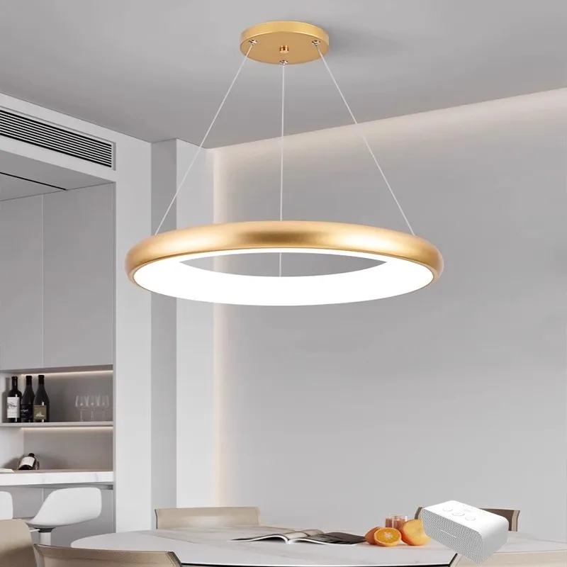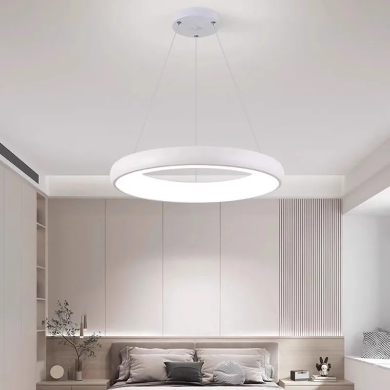 Modern Nordic Style 48W LED Ring Lighting High Performance Iron Chandelier for Living Room Bedroom Hanging Remote Control