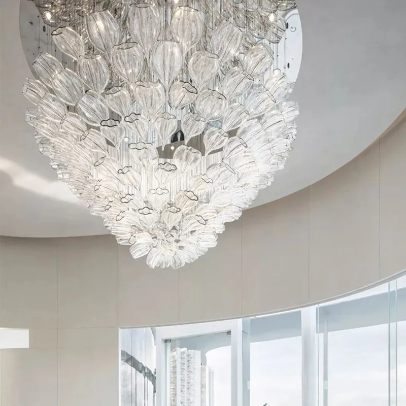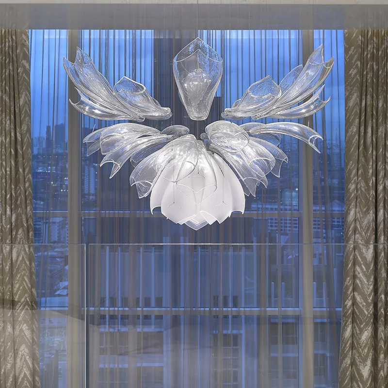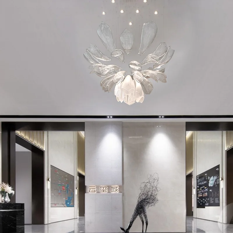 Zeal Lighting Custom Modern Large Glass Leaf Led Pendant Light Luxury Hotel Creative Design Chandelier