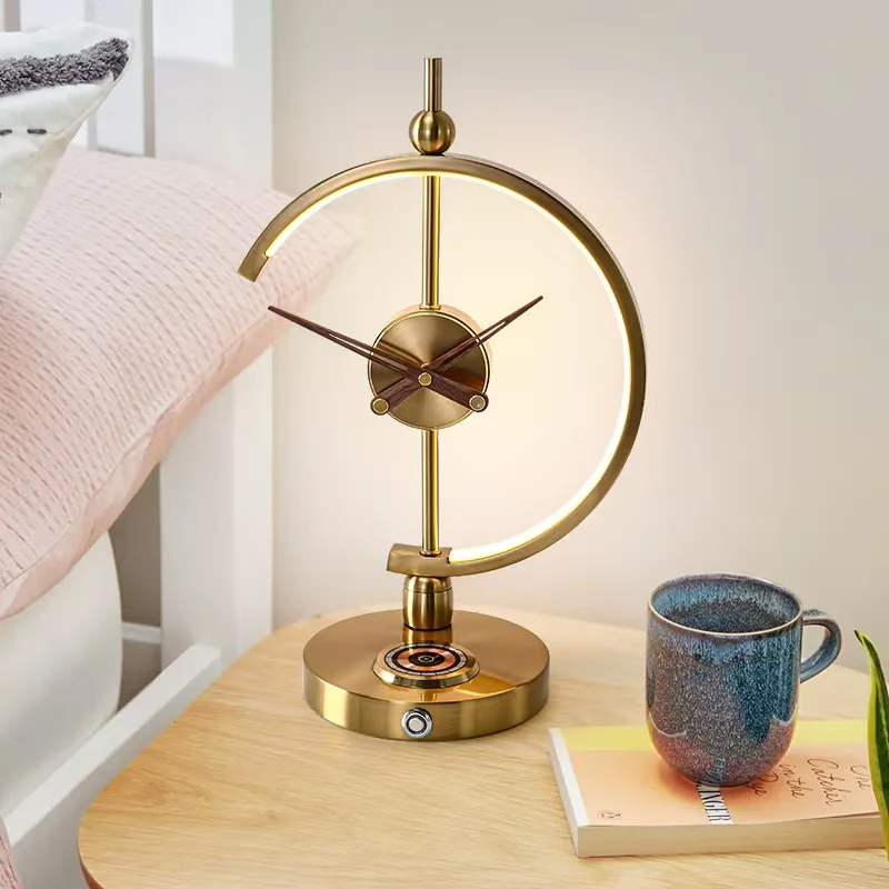 Home Decor Bedroom Living Room Bedside bar Wood Clock Table Light Led Desk Lamp with Wireless Charger