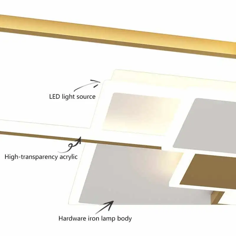 Living Room Study Ceiling Light Minimalist Fashion Bedroom Led Ceiling Lamp High Quality Square Iron Acrylic Modern