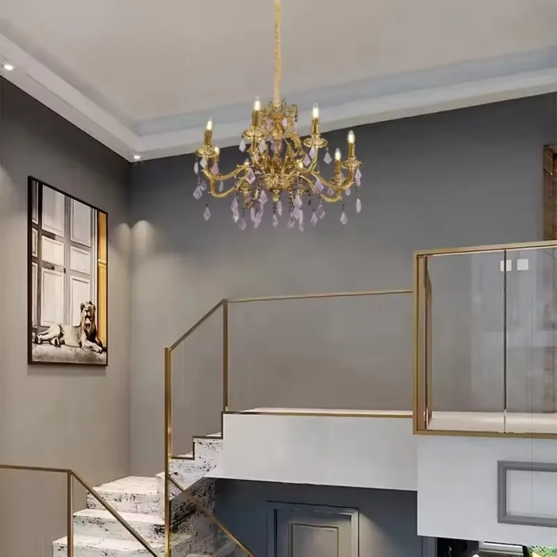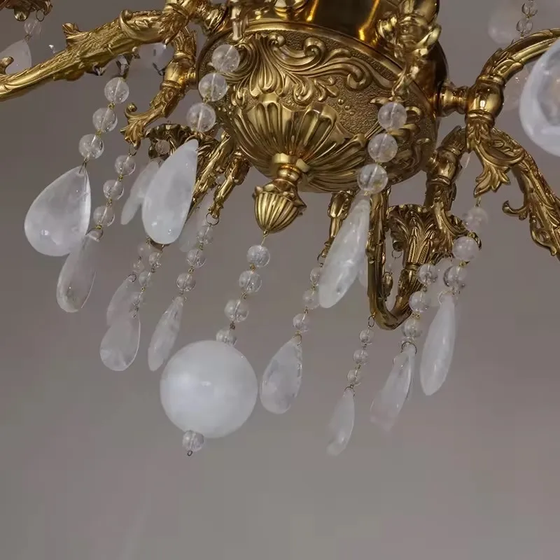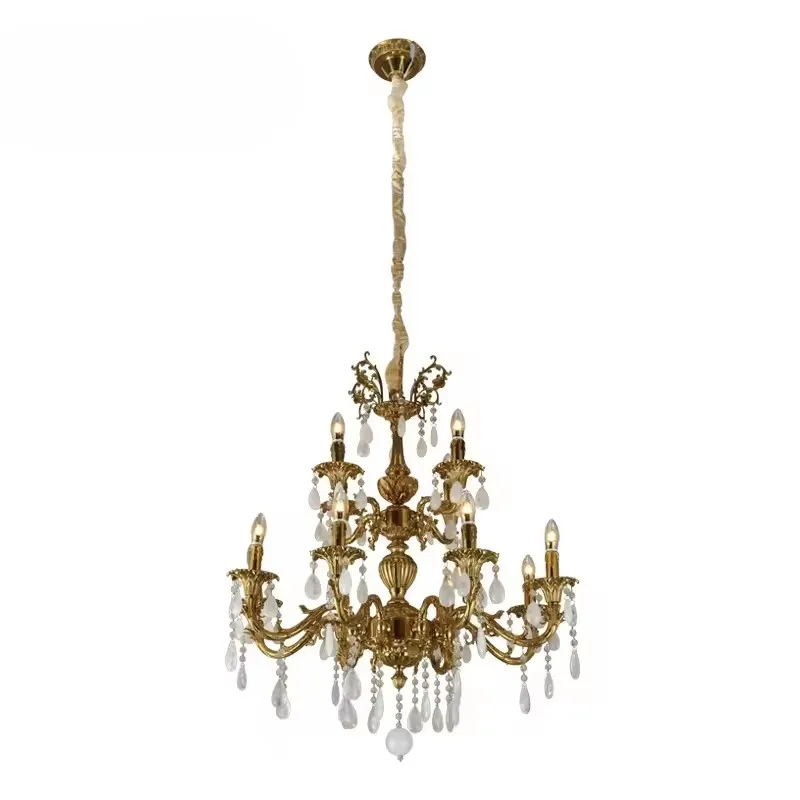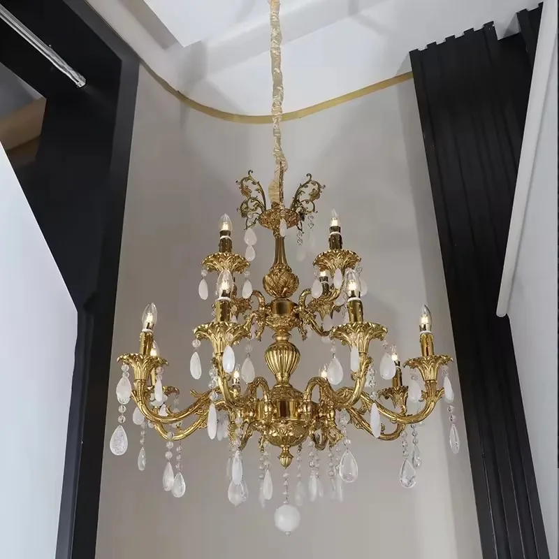 European Brass Pendant Lights for Luxury Living Room Antique Design Hotel Banquet Hall High-Quality Crystal Chandelier