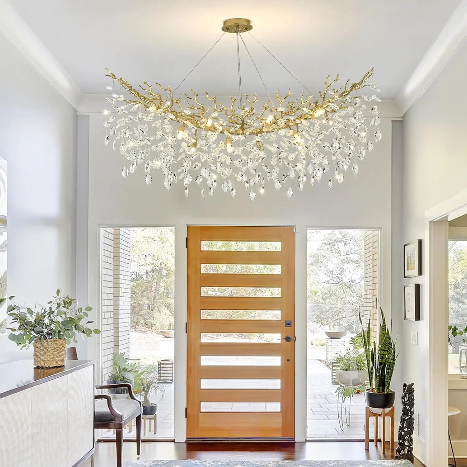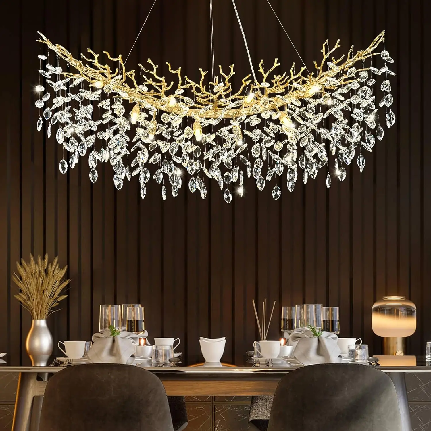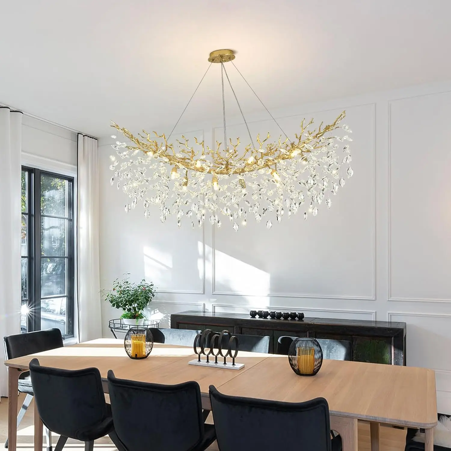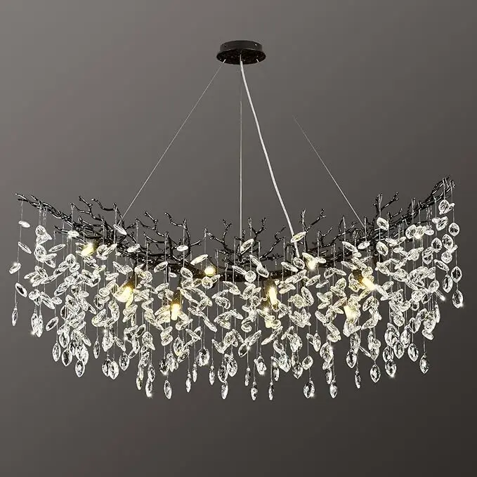 Modern Restaurant Crystal Chandelier L120CM/L160CM Black/Gold Luxury LED Adjustable Height K9 Raindrop Branch Light High Ceiling