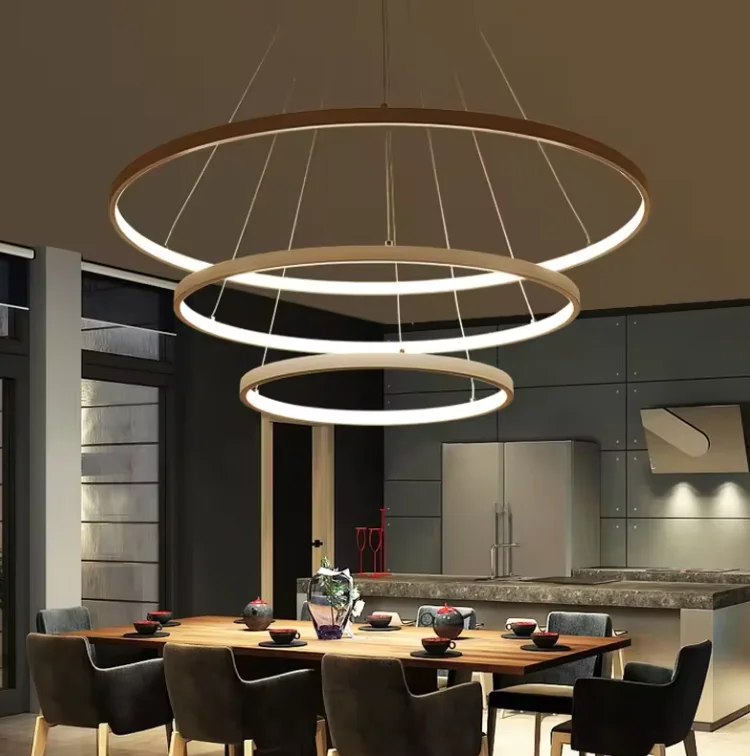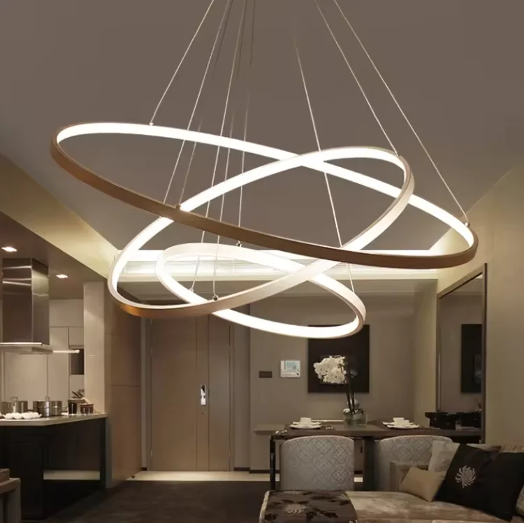 Zeal Lighting Nordic Modern Modern Luxury Indoor Led Ceiling Hanging Chandelier Dimmable Ring Pendant Light Circle Gold