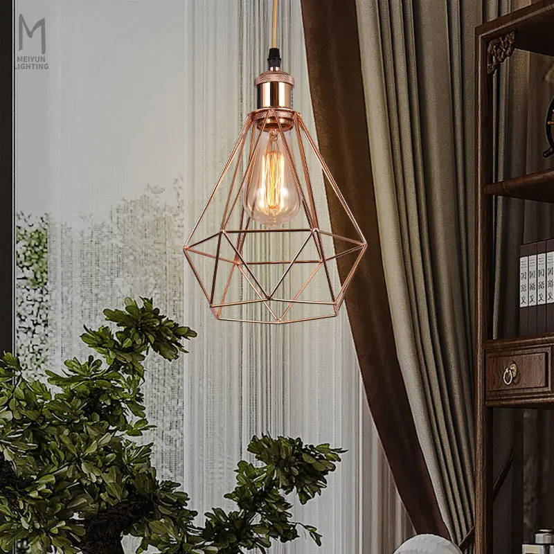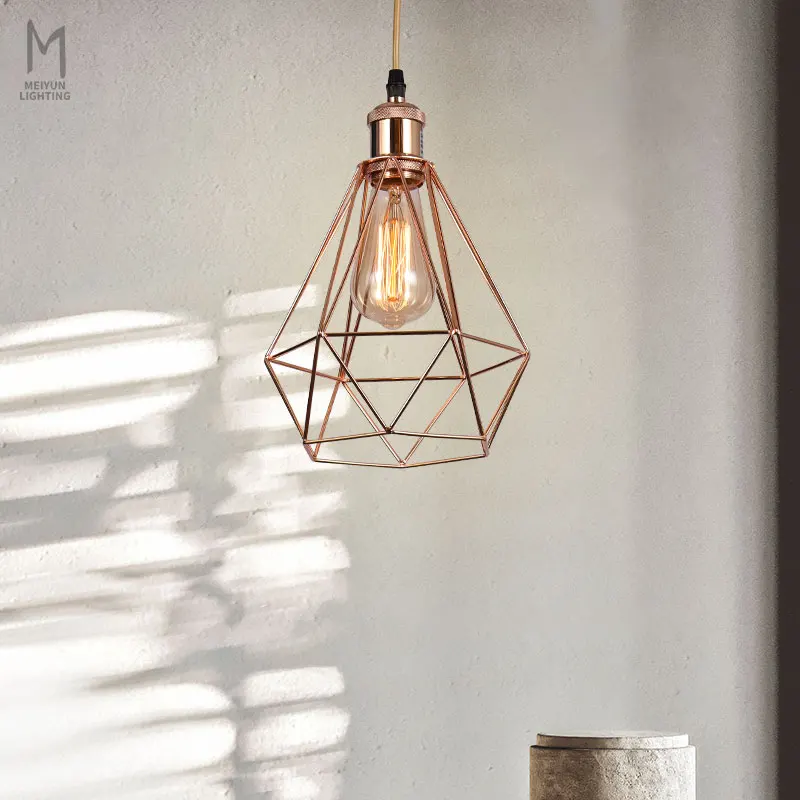 MEIYUN Industrial Iron Cage Decor Indoor Lighting Pendant Black Bedside