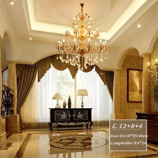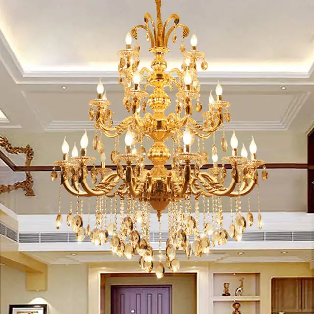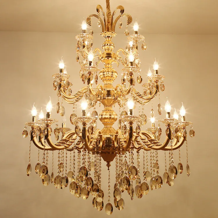 Trending Nordic Tradition Luxury Large Banquet Hall Luxury K9 Crystal Candle Led Gold Chandelier