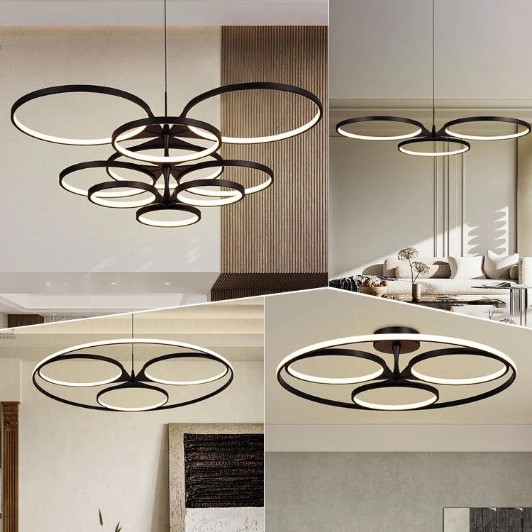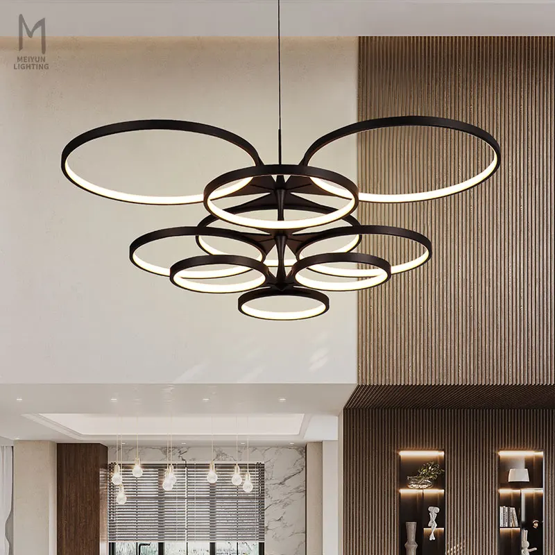 New Design Hanging Simple Decorative Rings LED Pendant Lights Aluminum Luxury Modern Round Circle LED Chandelier