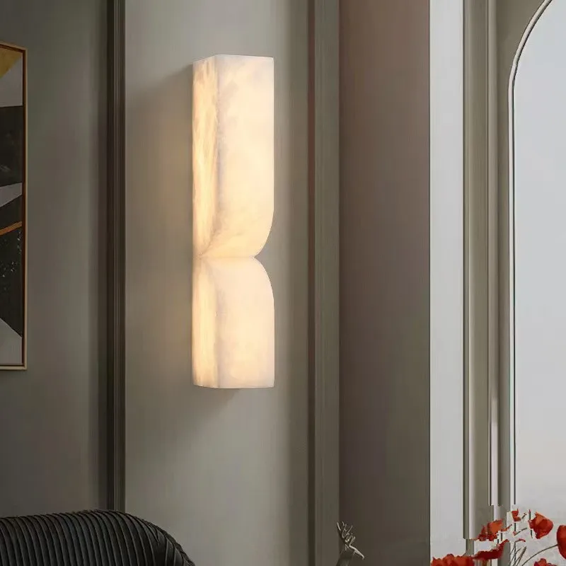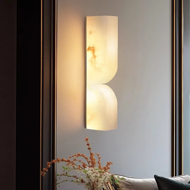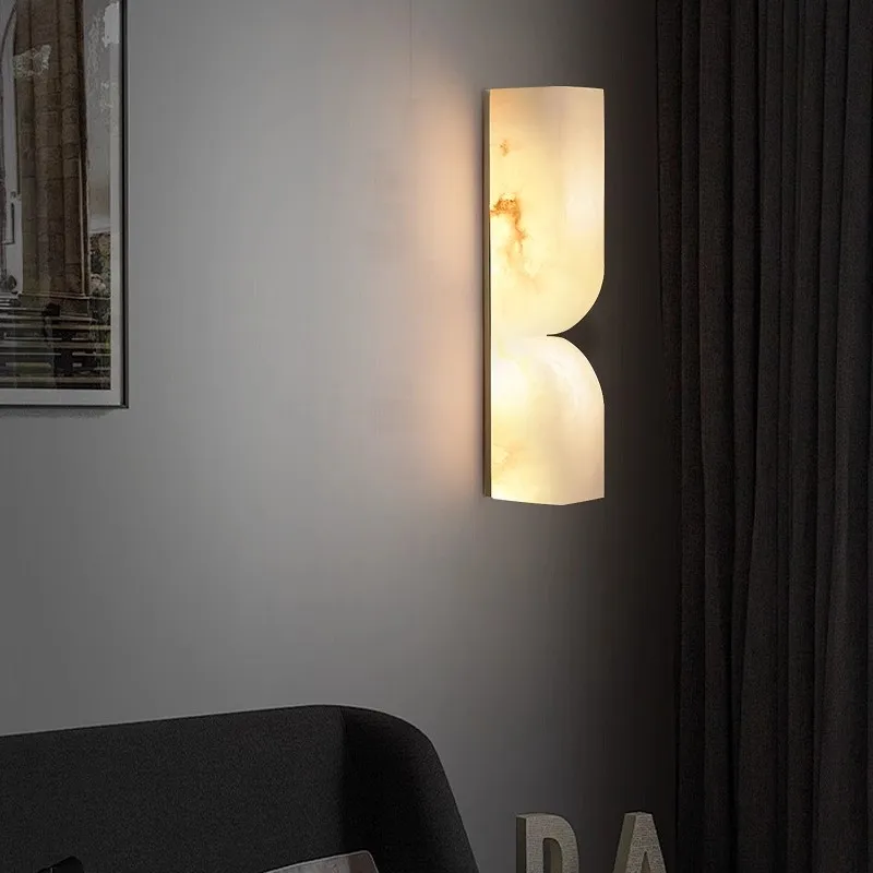 Modern Luxury Nordic All-Copper Wall Lamp with Spanish Natural Marble for Living Room Bedroom Bedside Corridor Stairwell