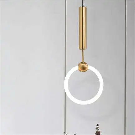 Dimmable Circle Hanging Lamp Kitchen Island Bedside Brass Chain Modern Single Head Pendant Lights