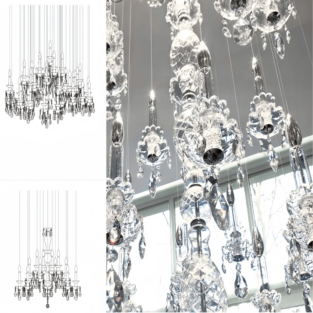 Zeal Lighting Long Stairwell Hanging Pendant Light Staircase Villa Duplex Stair High Ceiling Crystal Chandelier