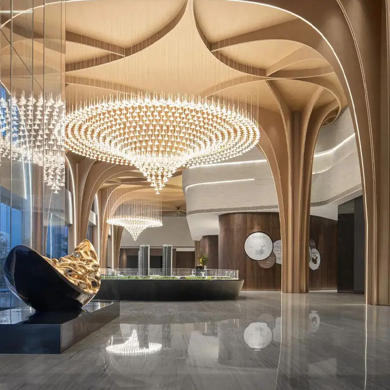 Customized Trumpet Shaped Acrylic Pendant Light Custom Hotel Villa Banquet Hall Chandeliers Lighting