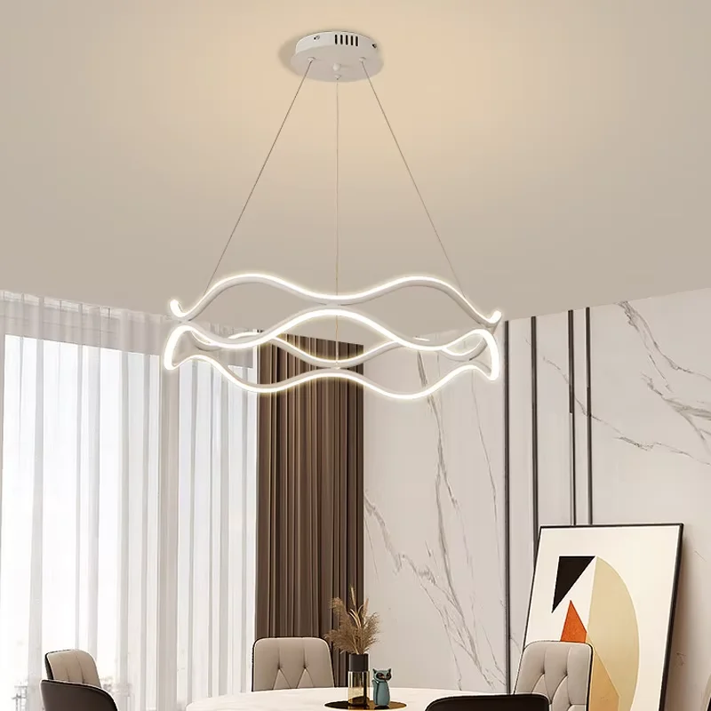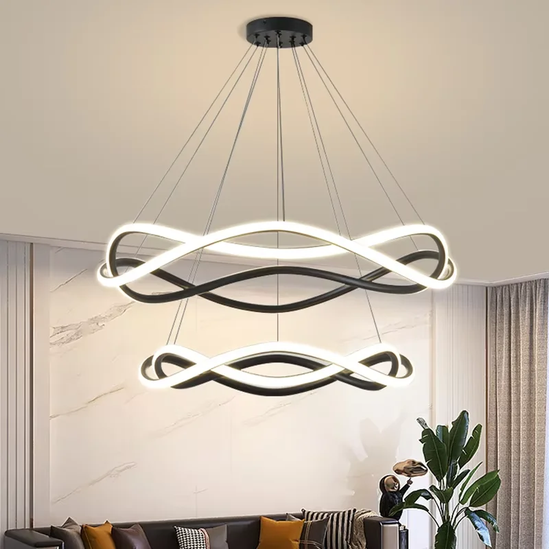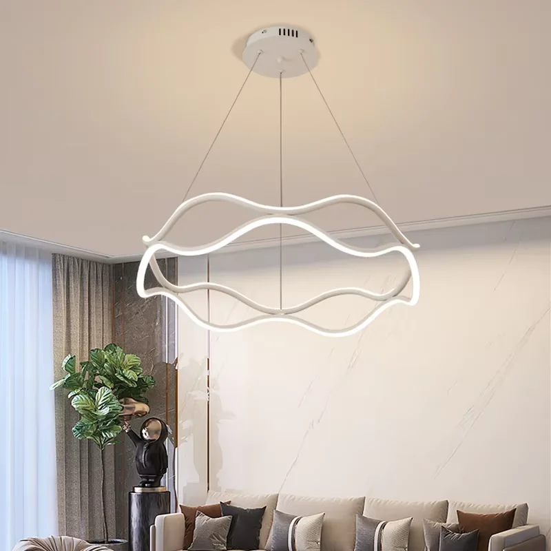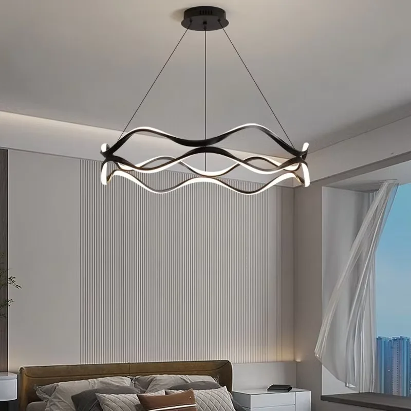 Minimal Annular Pendant Lamp Black White LED Living Room Pendant Lamp Bedroom Pendant Light Dining Room Chandelier