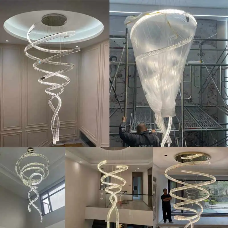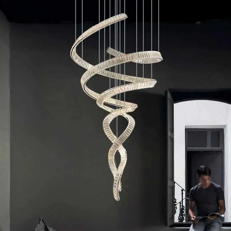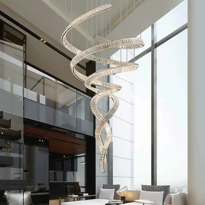 Indoor Hotel Living Room Staircase Hanging Lamps Modern Luxury Ceiling LED Crystal Chandeliers Pendant Lights