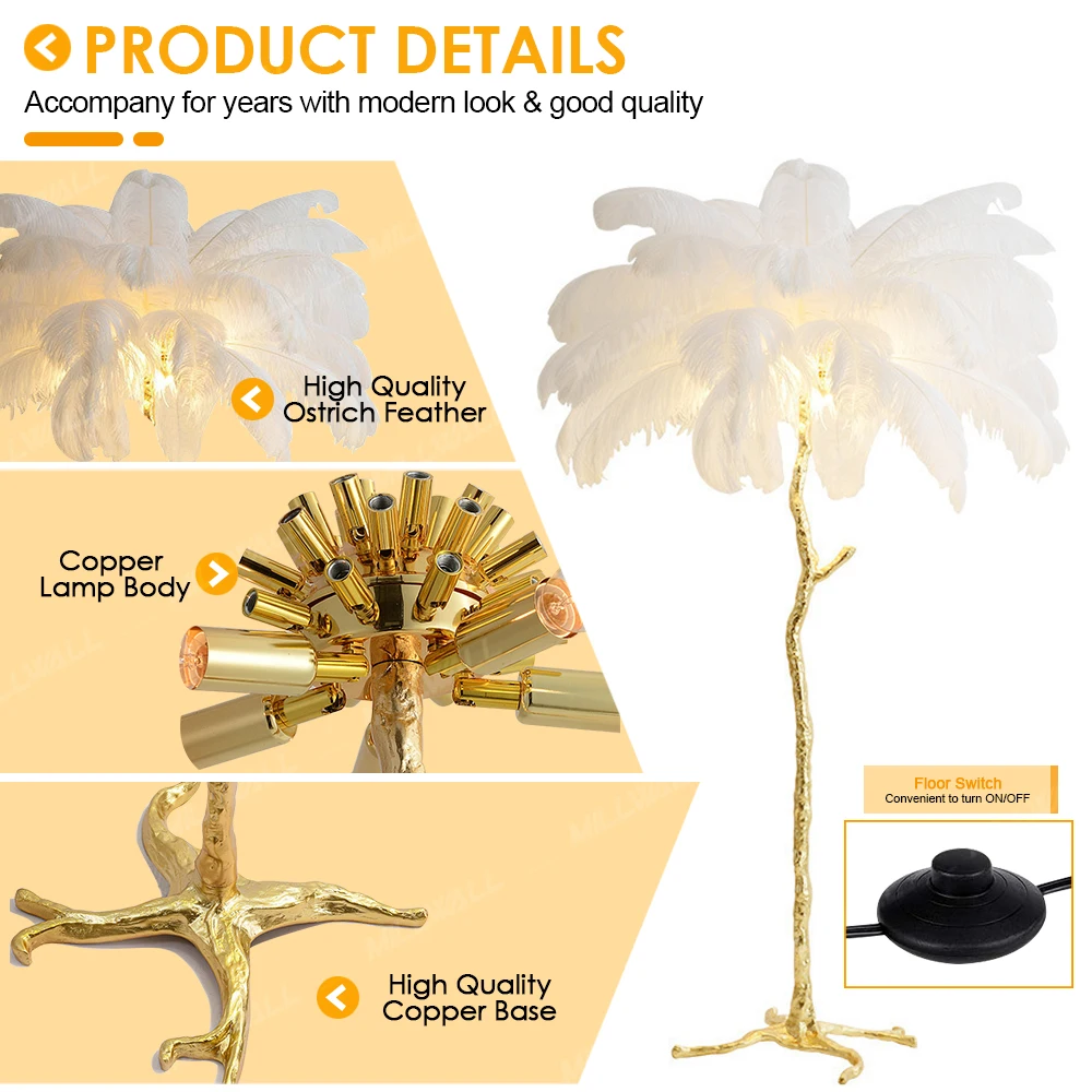Room Vibe Corner Luxury Modern Nordic Led Standing Arc Trees Light for Home Ostrich Modern Led Corner Feather Floor Lamp