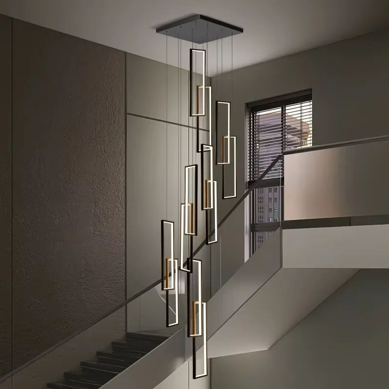 Art Design High Ceilings Acrylic square Pendant Light Large Staircase Living Room Luxury Led Modern Chandelier