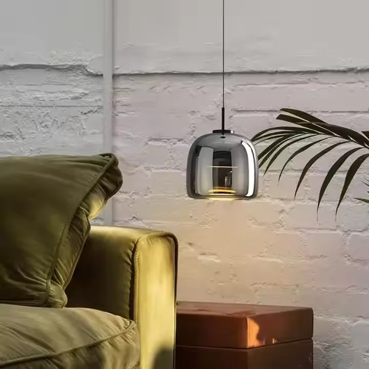 Zeal Lighting Bedroom Bedside Small Chandeliers Kitchen Nordic Hand Blown Smoke Grey Glass Ball Pendant Light