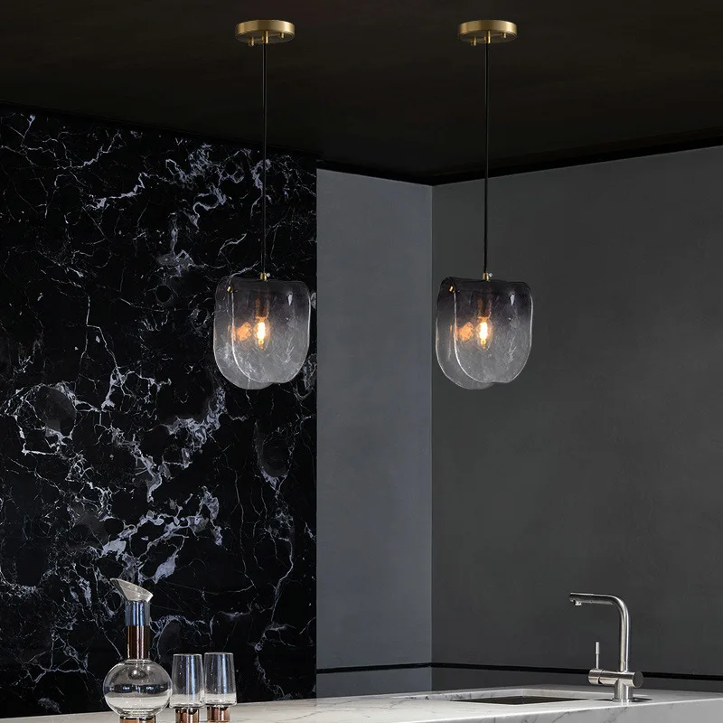 Post-Modern Simple All-Copper Retro Glass Chandelier Light Luxury Small Size Bedroom Bedside Lamp for Hotel & Restaurant Use