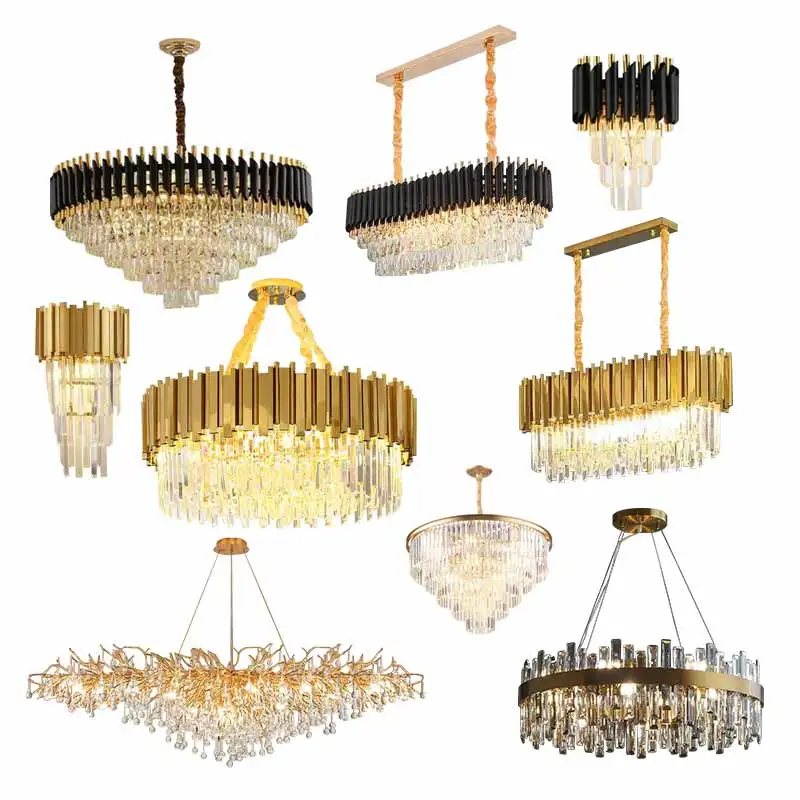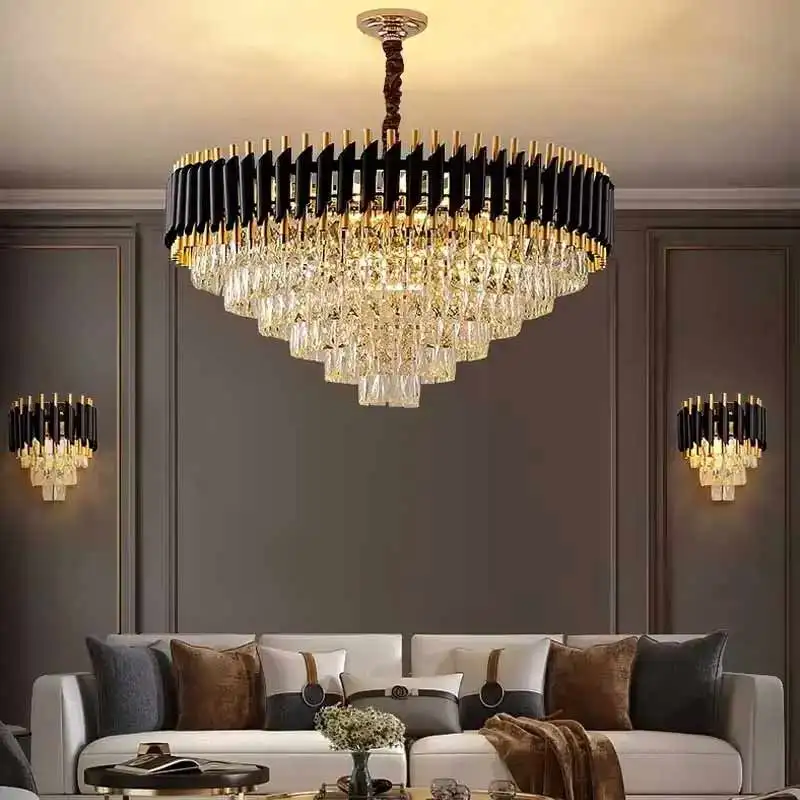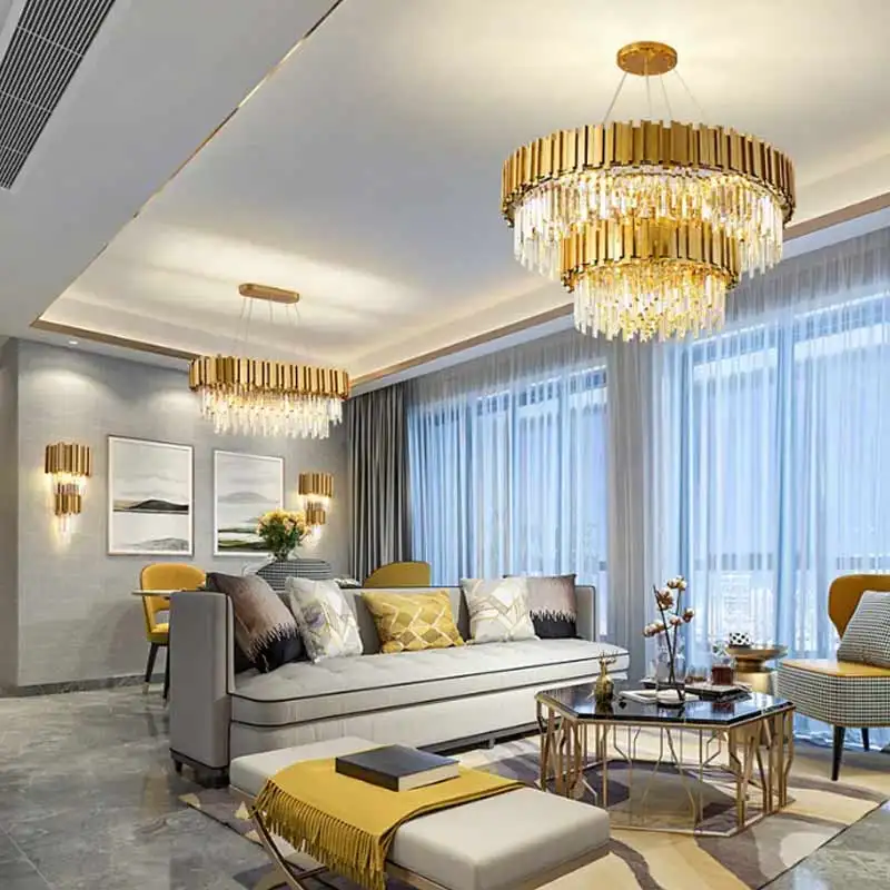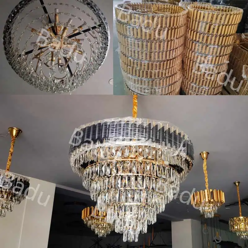 Modern European Vintage Luxury Crystal Chandelier Golden Decorative Hanging Light for Hotel Lobby Big Pendant Lights