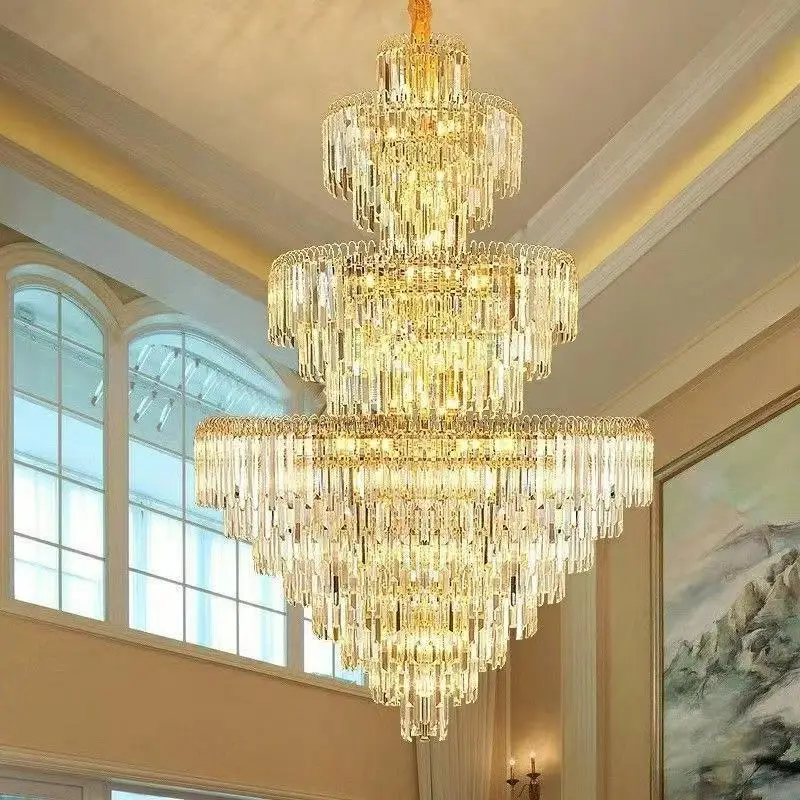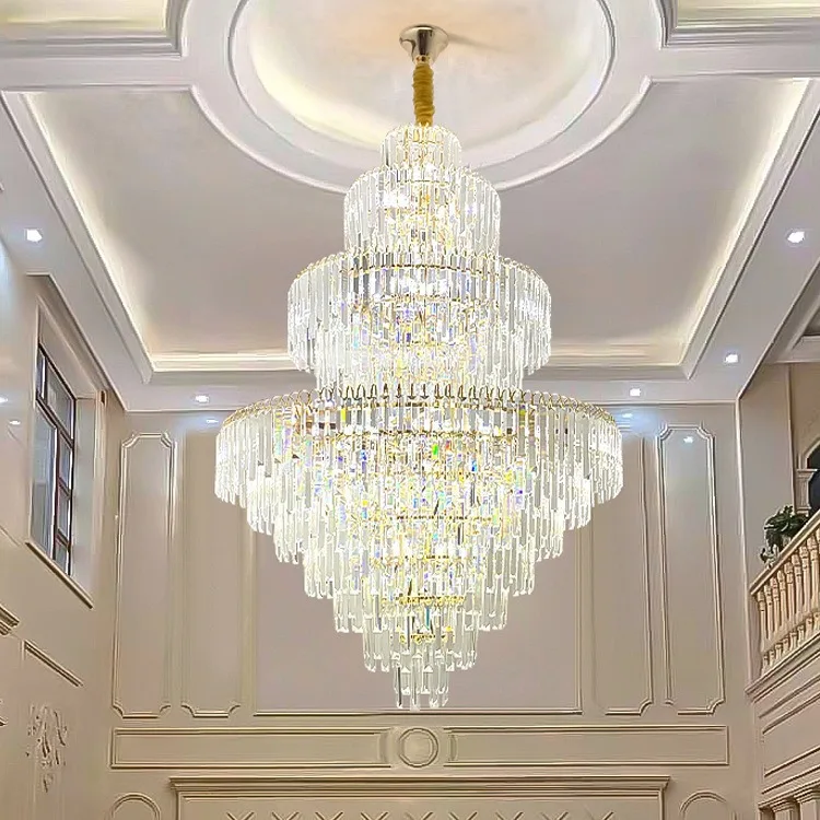 Large Size Decoration Banquet Villa Living Room Hotel Hall Luxury Gold K9 Crystal Elegant Light Chandelier