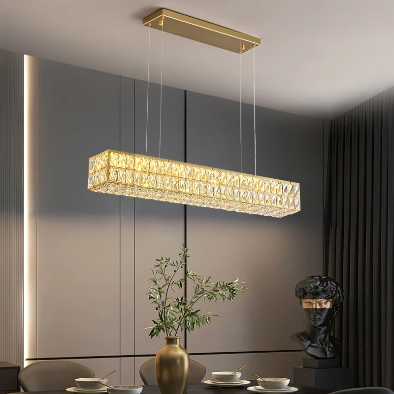 Zeal Lighting Hanging Modern K9 Crystal Gold Rectangular Pendants Light Chandelier for Living Room Restaurant