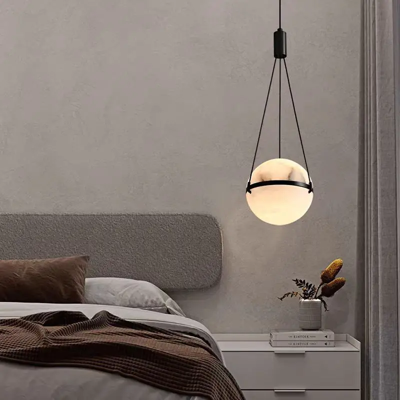 Italian Style High-End Copper Marble Pendant Light Bedside & Living Room Sofa Decorative Hanging Bar Counter for Middle Bedroom