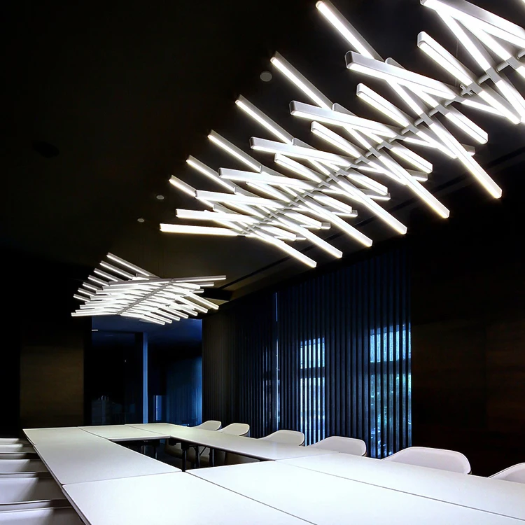 Modern Luxury LED Tubes Chandelier Pendant Light for Living Room Office Home Fishbone Lustre Chandelier Lighting Fixture