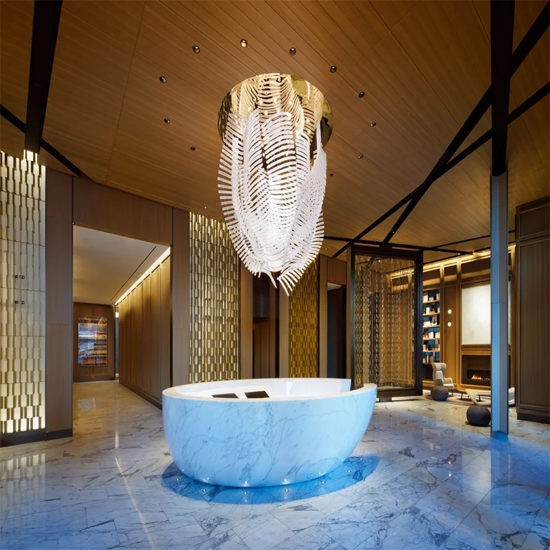 ECOJAS Custom Hotel Lighting Project Big Custom Large Lobby Luxury Crystal Chandelier Pendant Lights Lustre De Hotel