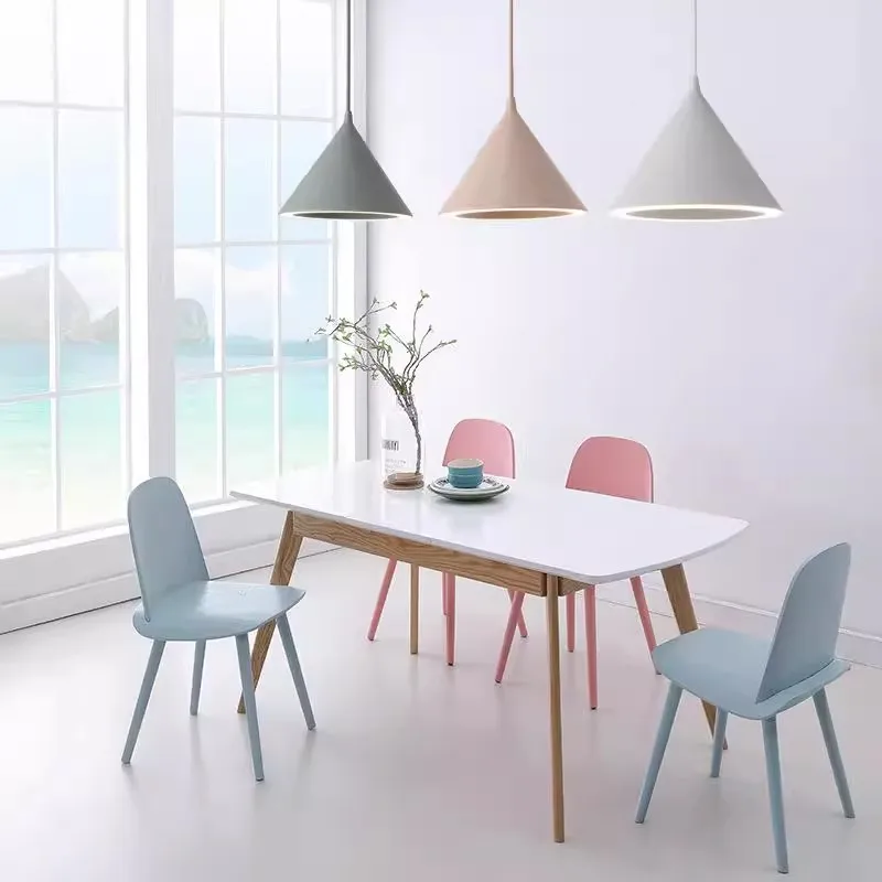 Nordic Style Three-Headed Macaron Iron Art Dining Chandelier for Dining Room Bar Bedroom-Adjustable Height with Middle Lamp Size