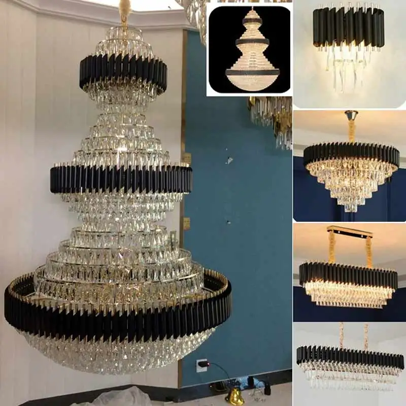 Luxury Design Indoor Decoration Light Big Hotel Church Staircase Custom Large LED Crystal Chandeliers