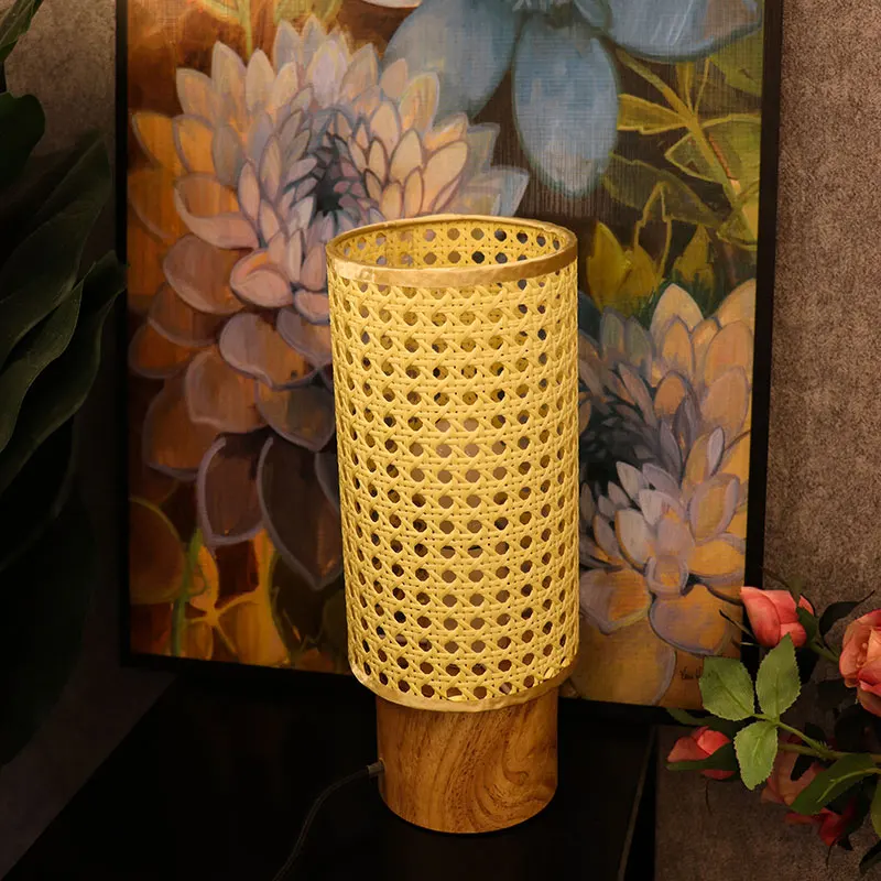 Latest Nordic Rattan Yellow Cylinder LED Bedside Restaurant Table Lamp