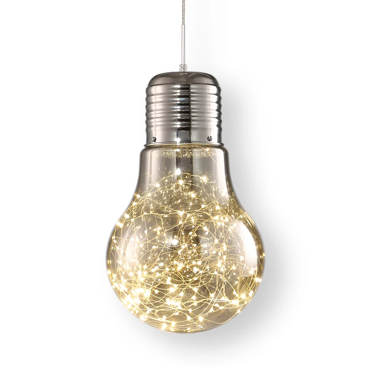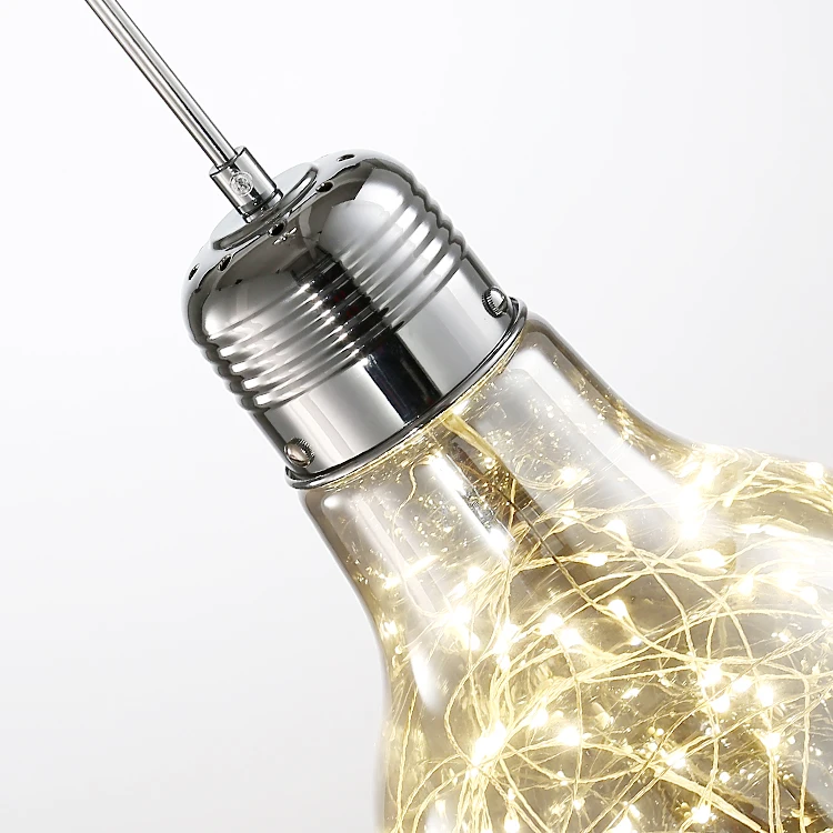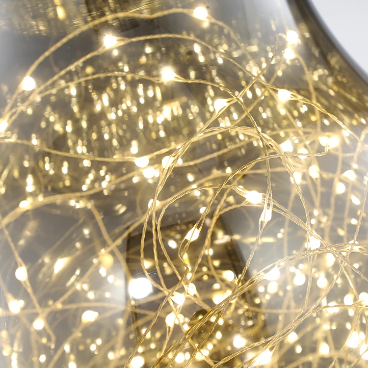 Starry Fairy Lights Bulb Shape Smokey Grey Glass LED Pendant Light
