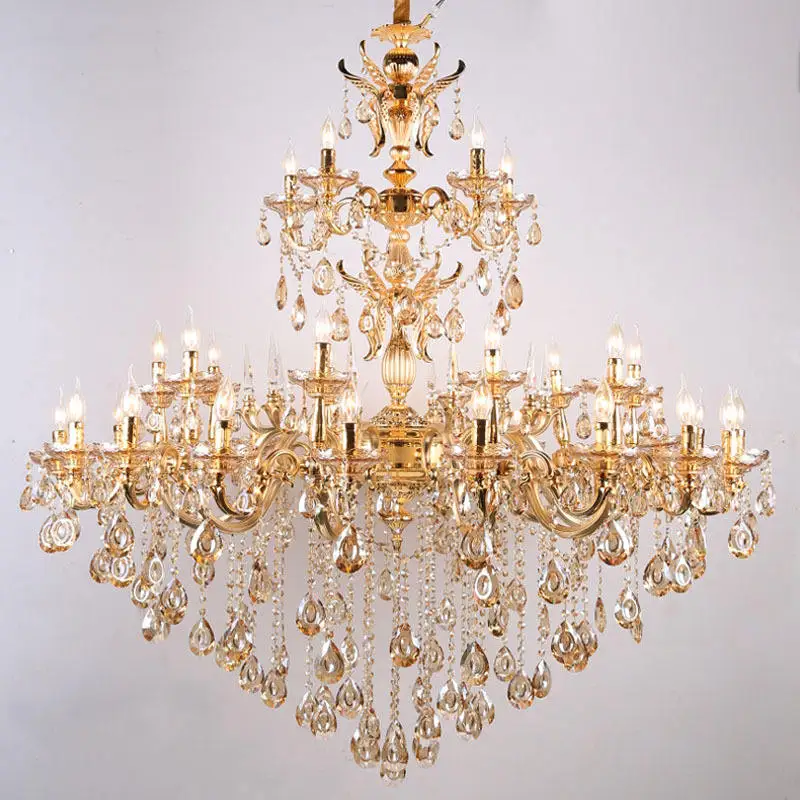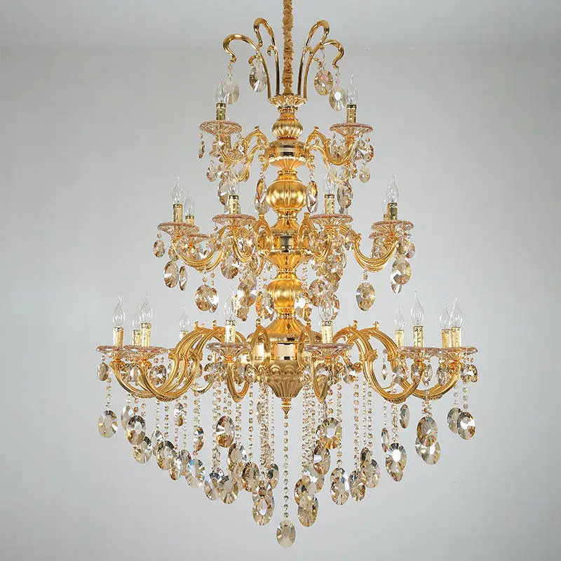 Royal Golden Project Luxury Traditional Pendant Light Hotel Lobby Glass Arm Candle Crystal Chandeliers for Weddings