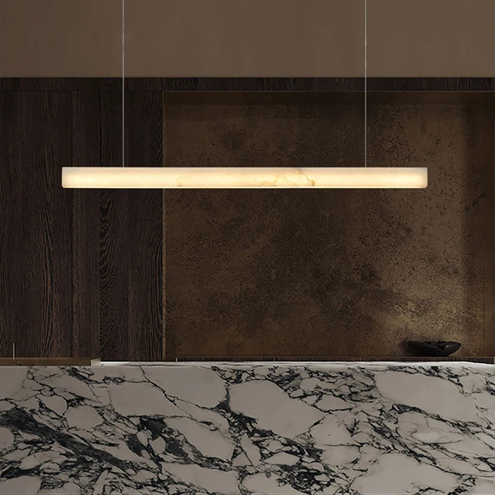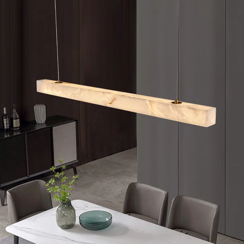 Restaurant Kitchen Bar Minimalist Marble Linear Pendant Lights Alabaster Hanging Chandelier for Dining Room Table