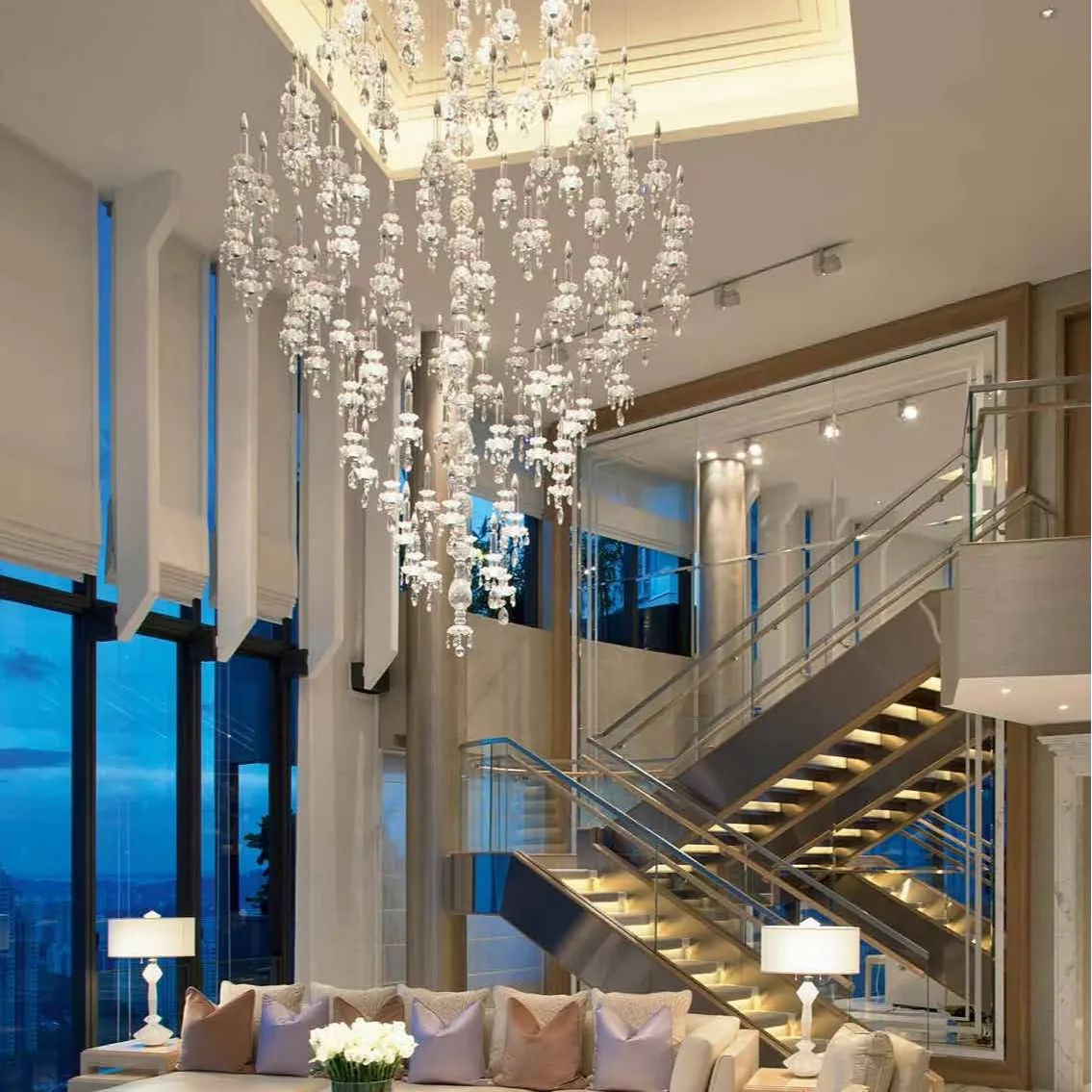 Zeal Lighting Long Stairwell Hanging Pendant Light Staircase Villa Duplex Stair High Ceiling Crystal Chandelier