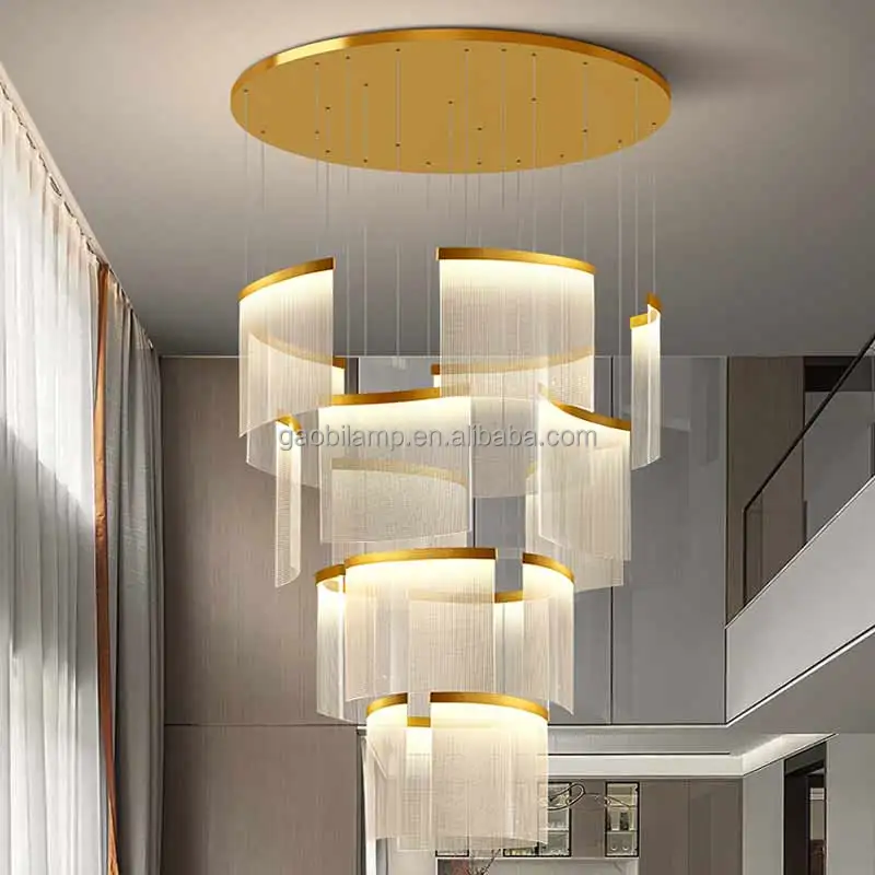 Zeal Lighting Hotel Lobby Hall Decorative Large Hanging Light Customized Long Gold Crystal Elegant Chandelier