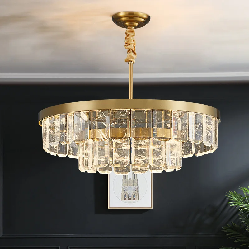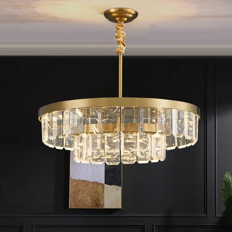 American Style Luxury Gold Crystal Round Chandelier B22 Bulb Base Modern Style Brass Small Lamp for Hotel Hanging Installation