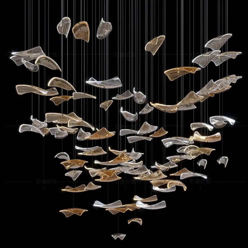 Modern Style Custom Designed Fish Shaped Decorative Hanging Light Glass LED Chandelier Pendant Light for Hotel Villa
