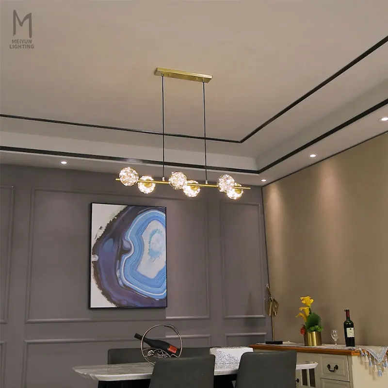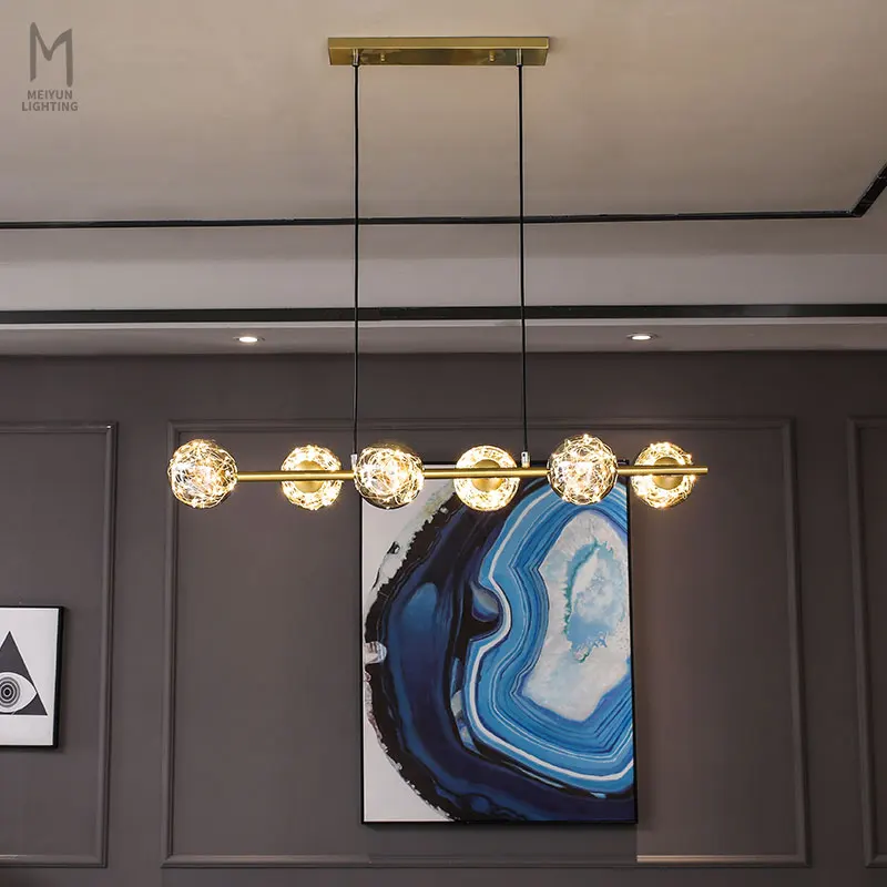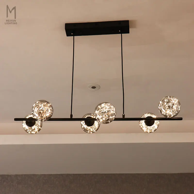 Nordic Black Smoked Blown Glass Modern LED Pendant Light for Dining Room Linear