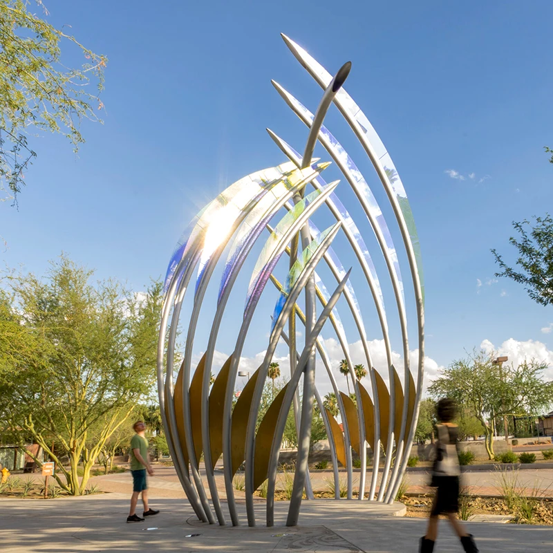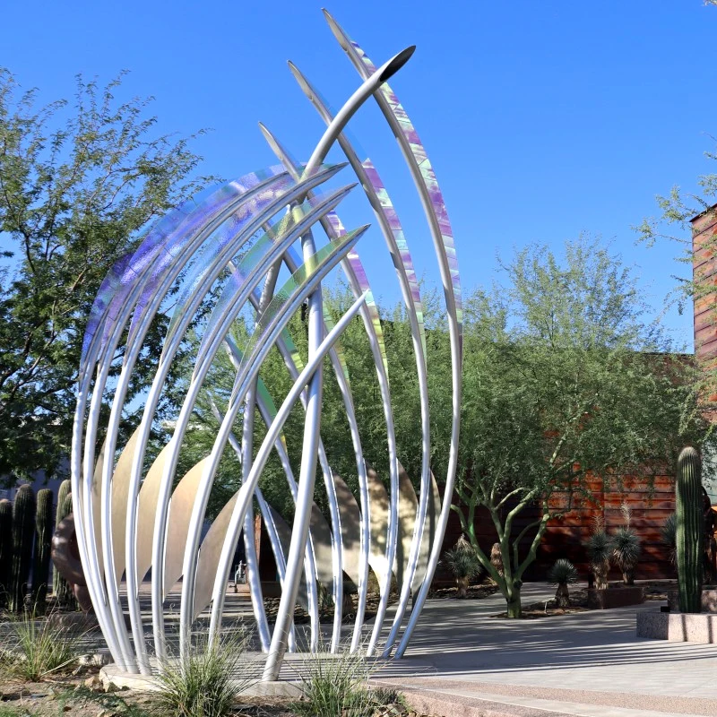 Outdoor Stainless Steel Garden Lights Sculpture Custom Hollow Metal Abstract Decoration