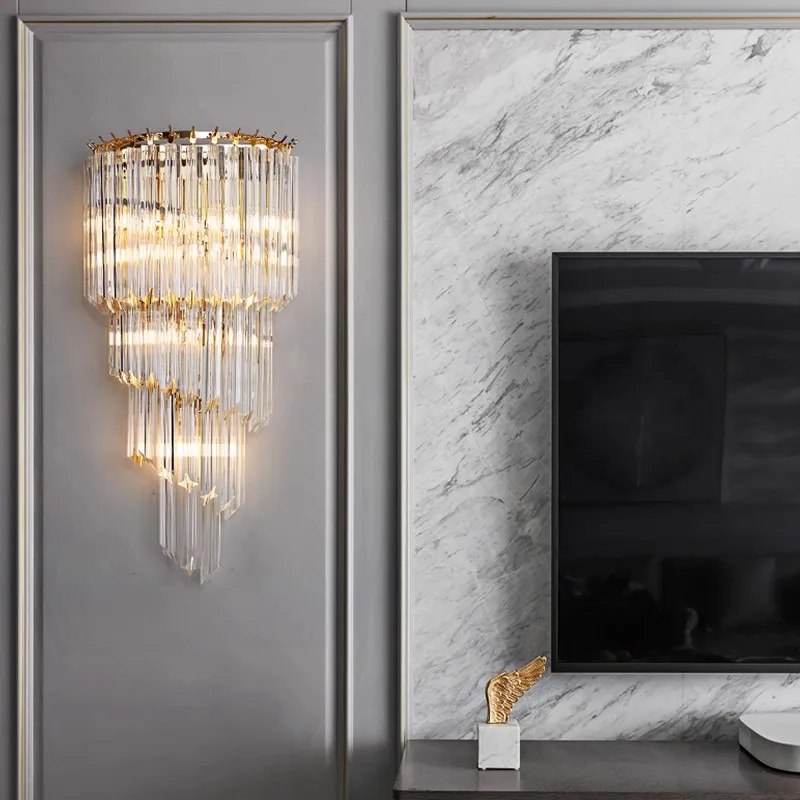 Modern Luxury Hotel Villa Wall Lamp Iron Crystal for Lobby Bedroom Lighting Unique Design for Decorative
