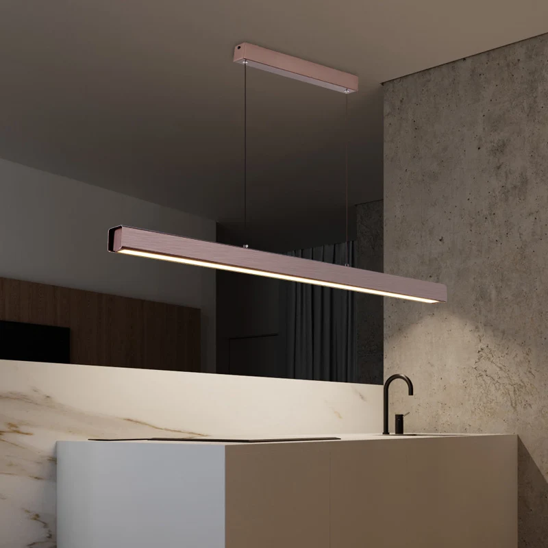 Modern Minimalist Brown LED Chandelier Pendant Lights with Remote Control for Restaurant Dining Room Office Indoor Lighting