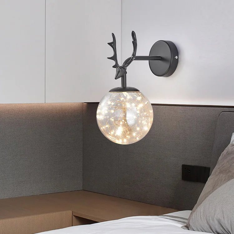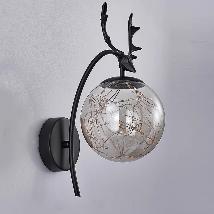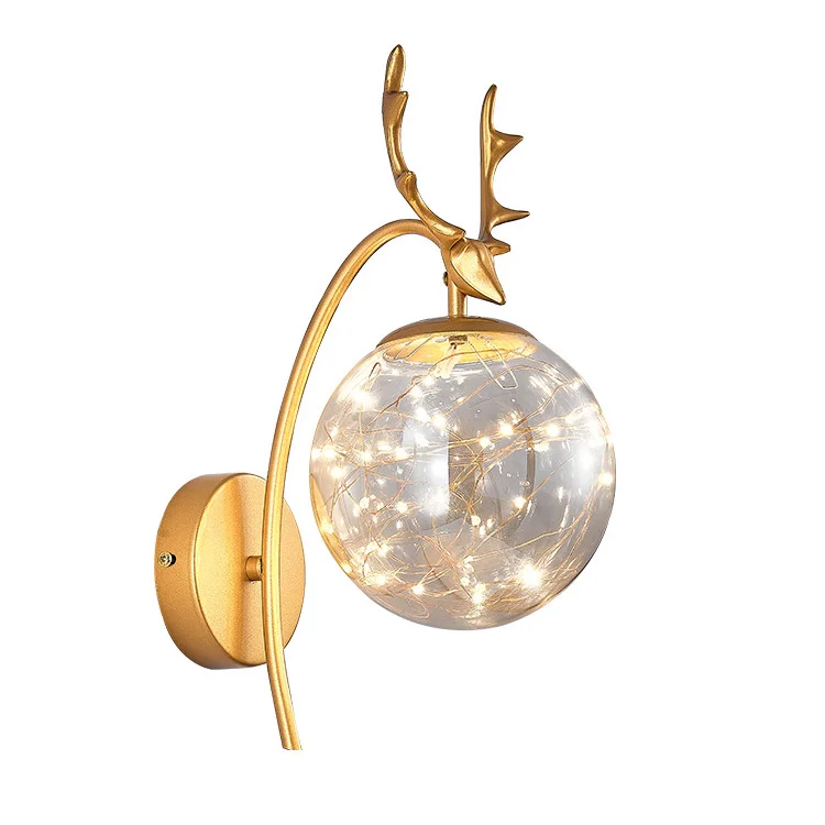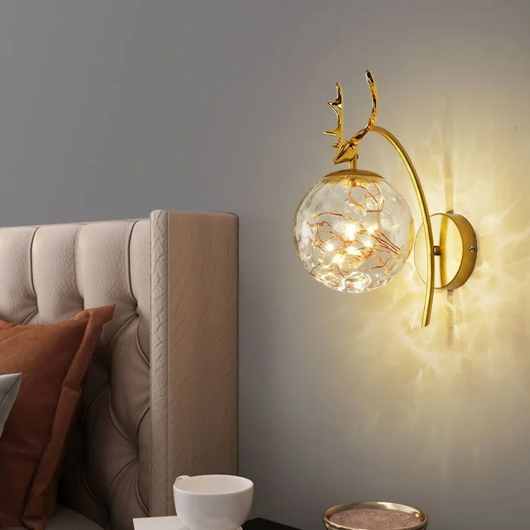 Nordic Round Glass Lampshade Wall Lights Modern Luxury Corridor Light for Bedroom Bedside Decor Antler Gold Led Wall Lamps 6W