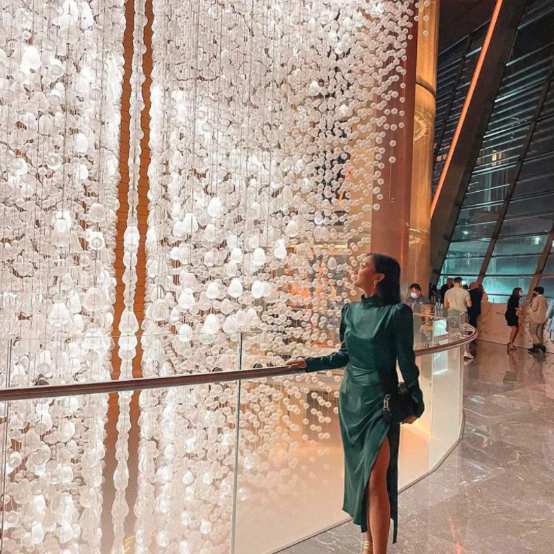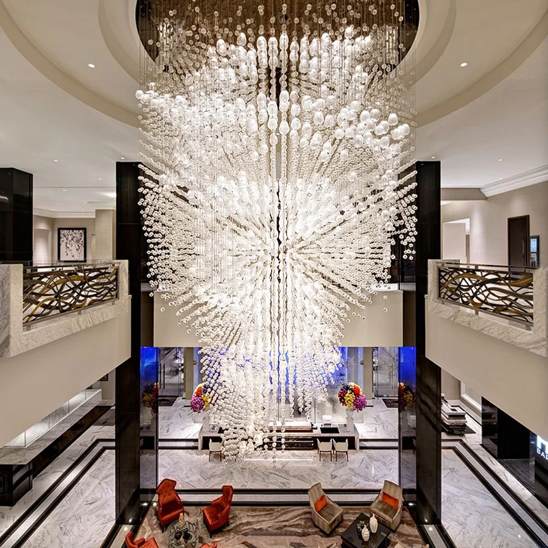 Zeal Lighting Long Stairwell Hanging Pendant Light Staircase Villa Duplex Stair High Ceiling Crystal Chandelier