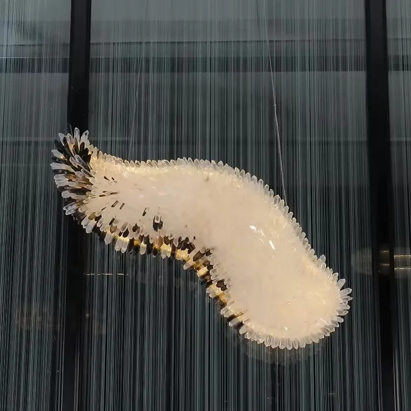 Italian Living Room Natural Rock Crystal Chandelier Hotel Villa Dining Room Bedroom Creative Design Angel wings Decorative Light