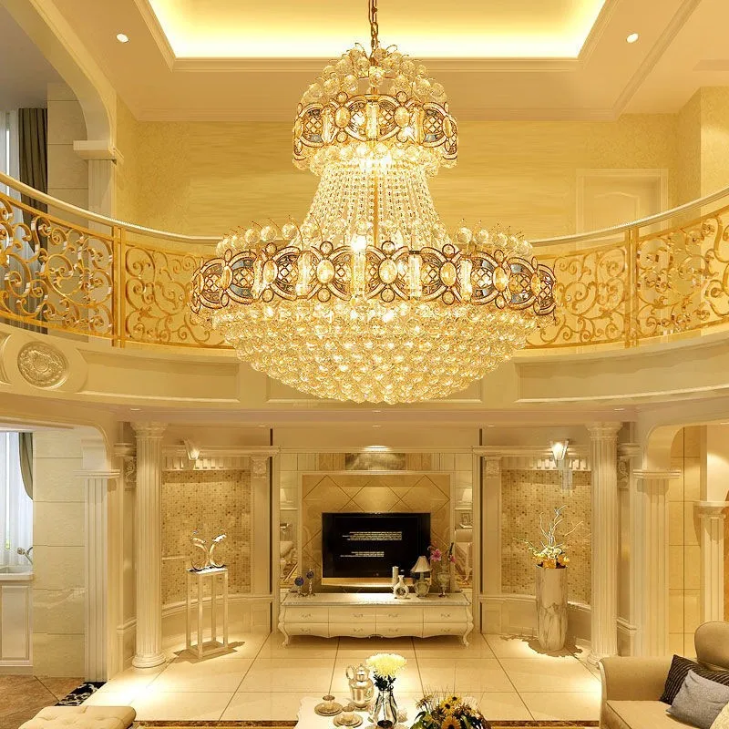 Classic Style Luxury Gold Hanging Light Living Room Hotel Lobby Villa Large Mosque K9 Crystal Chandeliers