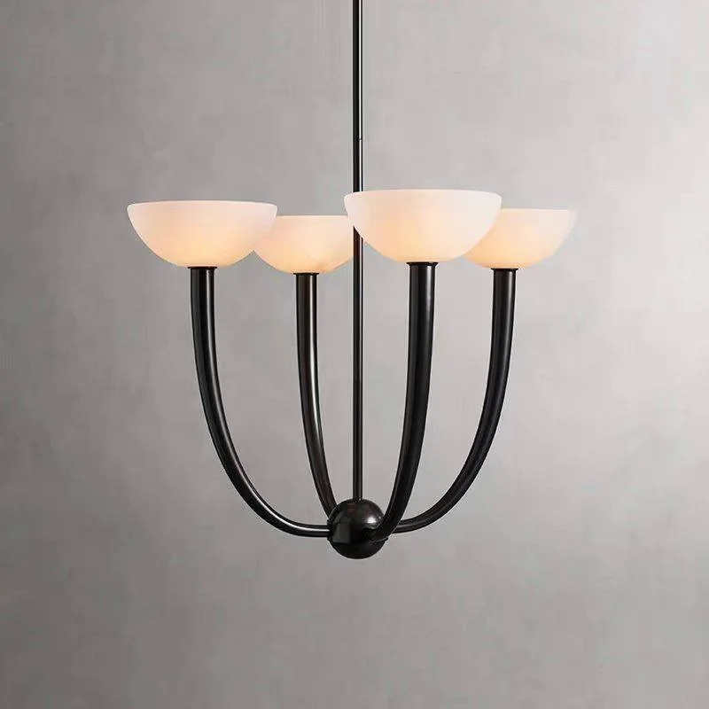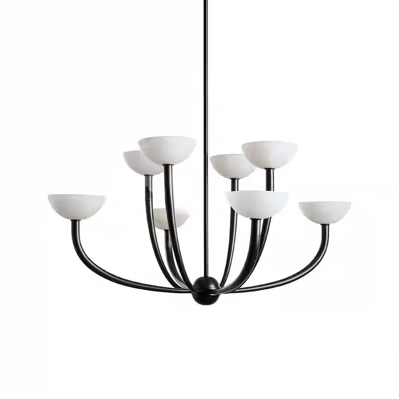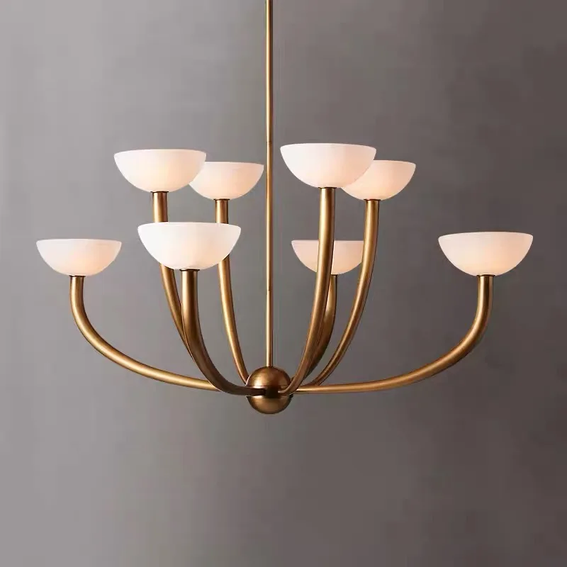 American Retro Modern Luxury High-End Bedroom Lamp Natural Marble Pendant Light for Living Room Copper Material Chandelier