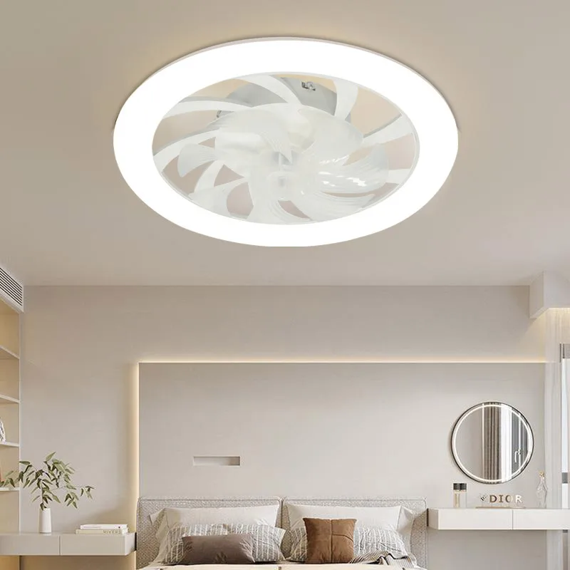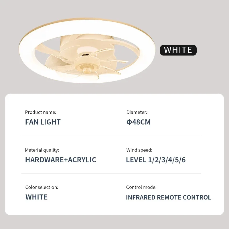 Smart Remote LED Ceiling Fan with White 5 Blades Fancy Design Electric Fan LED Light 60W AC/DC Motor for Home Plastic Lamp Body