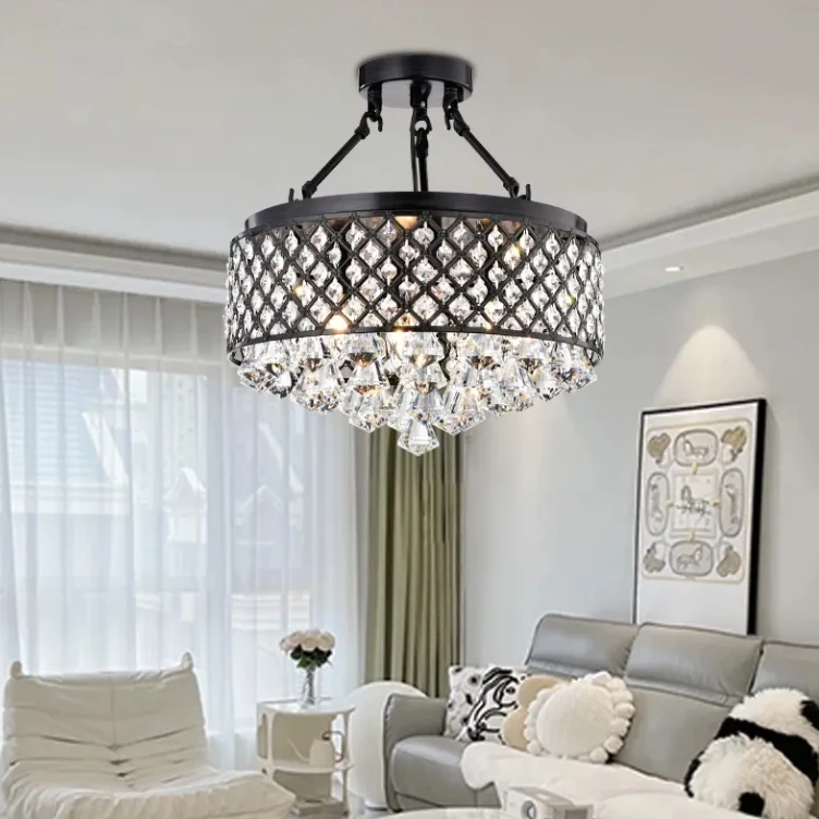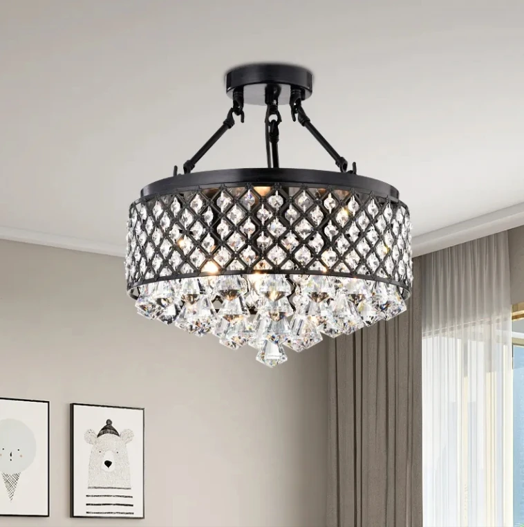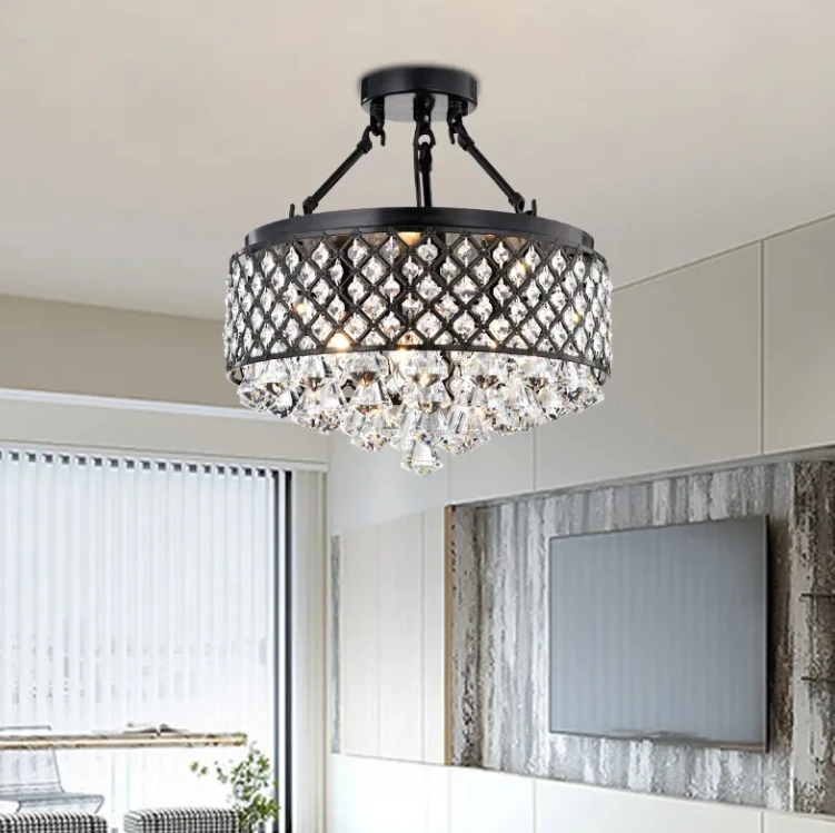 American Style Living Room Use Black Round Led Ceiling Chandelier Light Fixture for Hotel Bedroom