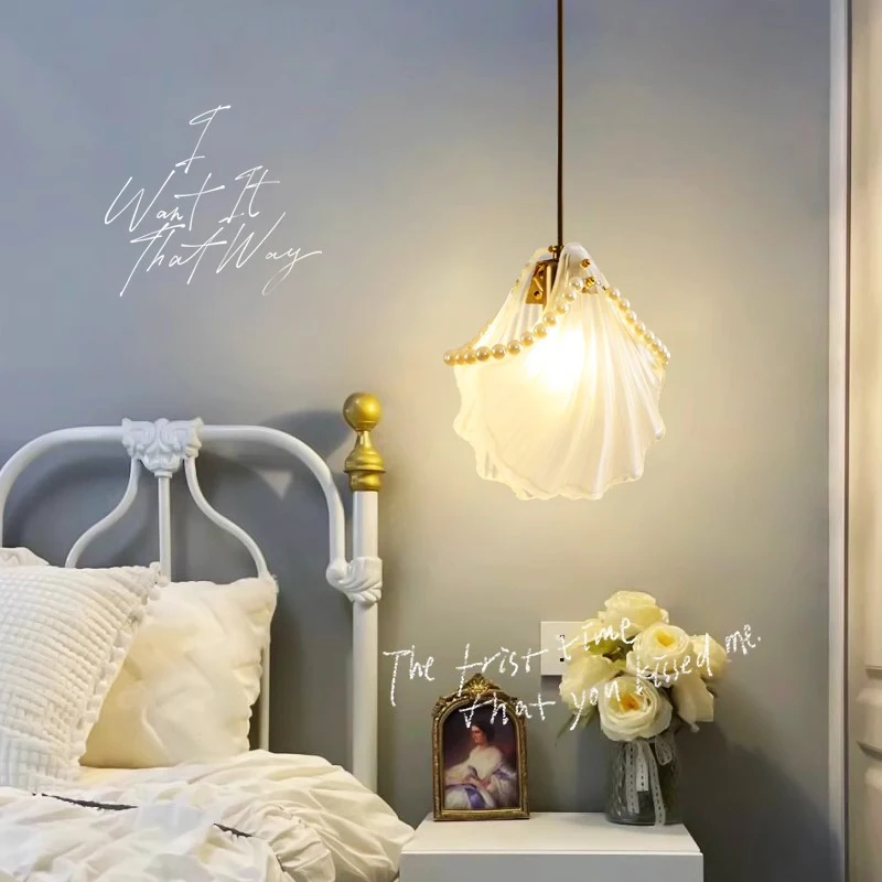 Kirsten Pendant Light Pearl Shell Design Glass Ceiling Pendant Bar Counter Hallway Entrance European Small Glass Chandelier Lamp