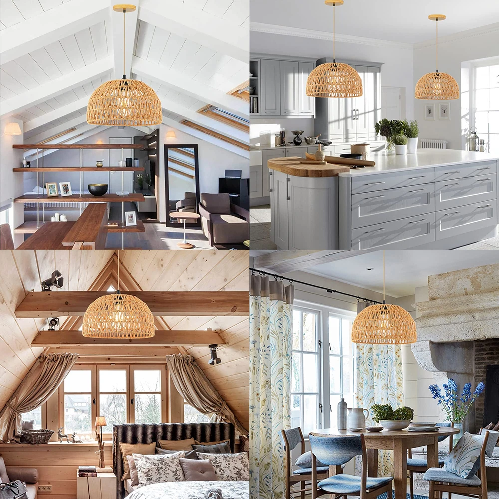Rattan Pendant Light Fixture Woven Hanging Ceiling Bamboo Wicker Chandelier for Corridor