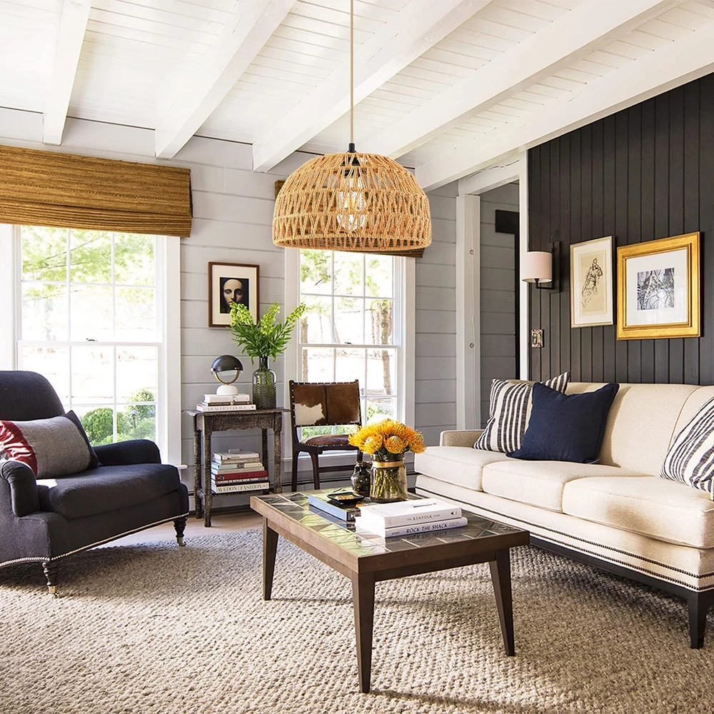 Wabi-Sabi Handcrafted Tassel Macrame Woven Pendant Light Twine Braid Rattan Led Rattan Chandelier